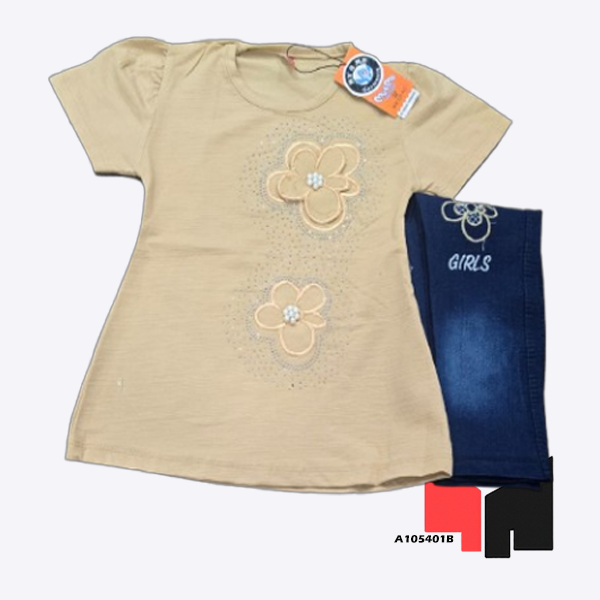 Give your little girl a stylish and comfortable look with this beautiful Floral Embellished Girls’ T-Shirt and Denim Set. The soft beige t-shirt features lovely floral embellishments with sparkly beads that add a touch of elegance to her outfit. The soft fabric ensures comfort for everyday wear, and the denim pants complete the look with a chic yet relaxed fit. This versatile set is ideal for casual outings, school, or playdates, and is available in six delightful colors to suit every girl’s personality. The “GIRLS” embroidery on the denim adds a fun and trendy touch. With this set, your little one can stay fashionable and comfortable all day long. Perfect for spring and summer, it’s a must-have in her wardrobe!