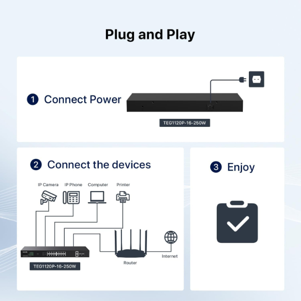 0 reviews for Tenda TEG1120P-16-250W Switch 16 ports / Switch 18 ports Gigabit 10/100/1000 Mbps